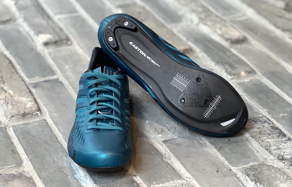 また、薄く強いEASTONカーボンソールの特徴として、強さだけでなく、ソール全体の適度なバネ感によって、ペダリングの軽快さも向上でき、トルクを強くかけずに回転を上げていくこともしやすくなっていますので、私(内田)のように脚力に自信のない方にも素晴らしい味方となってくれるのです。