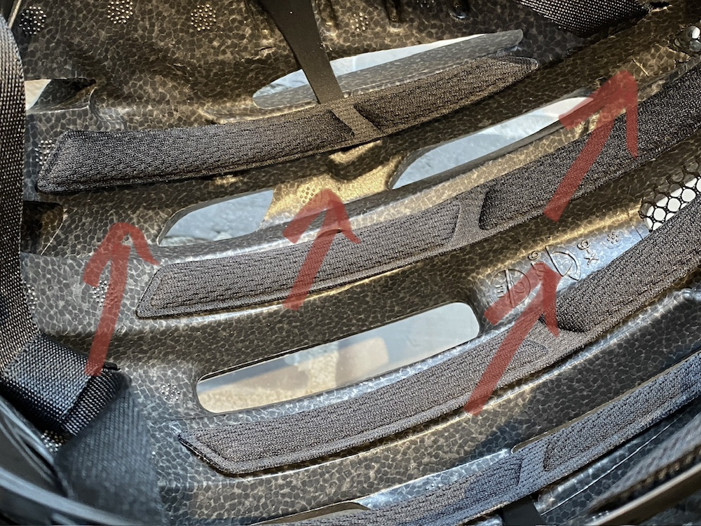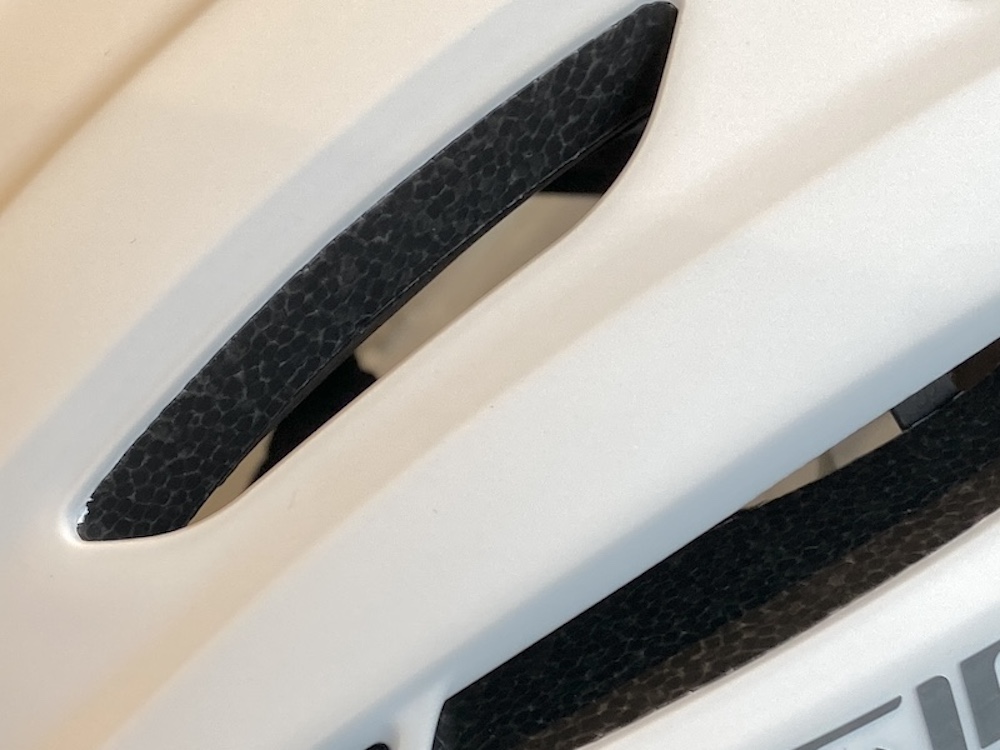 頭部に触れる部分からより深く溝が掘られている形状になり、このトンネルのおかげでヘルメット内部に風の流れを計算し尽くされた通り道を確保でき、冷却性に優れ、かつ軽量なヘルメットへと進化を遂げました。