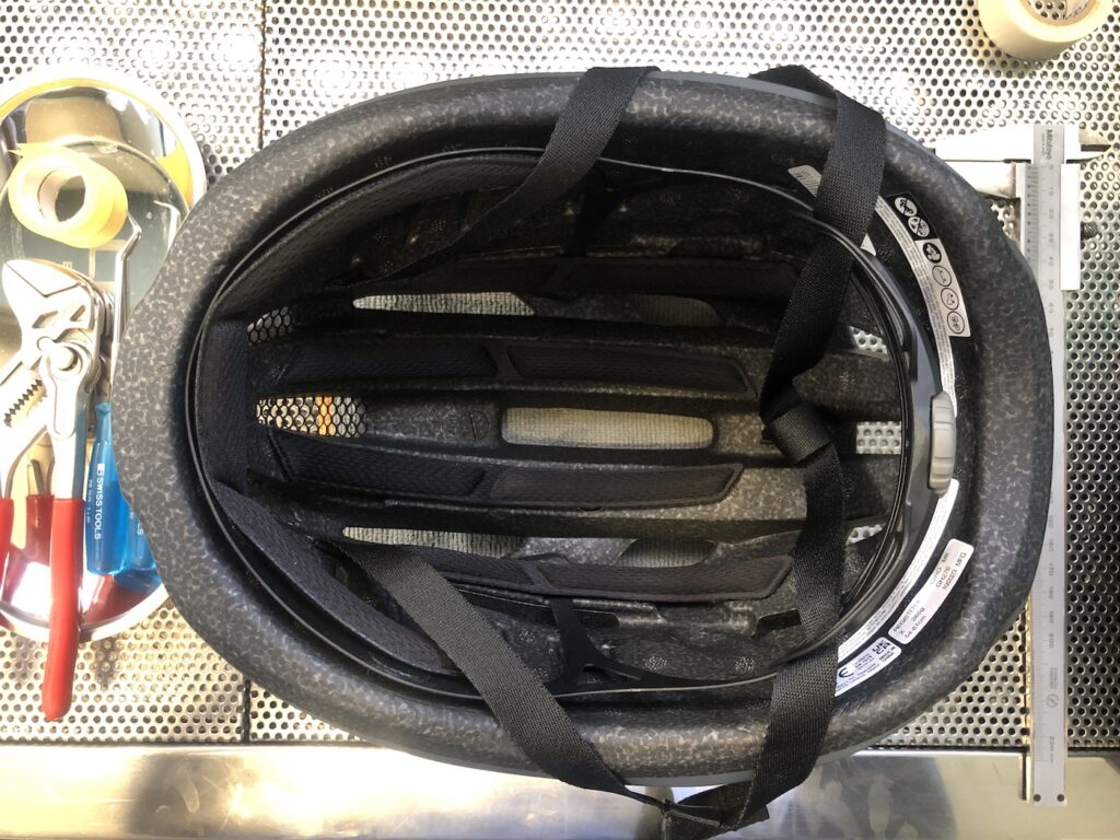 これはアジャスターを締めると額の部分がヘルメットに押さえつけられる感じになります。