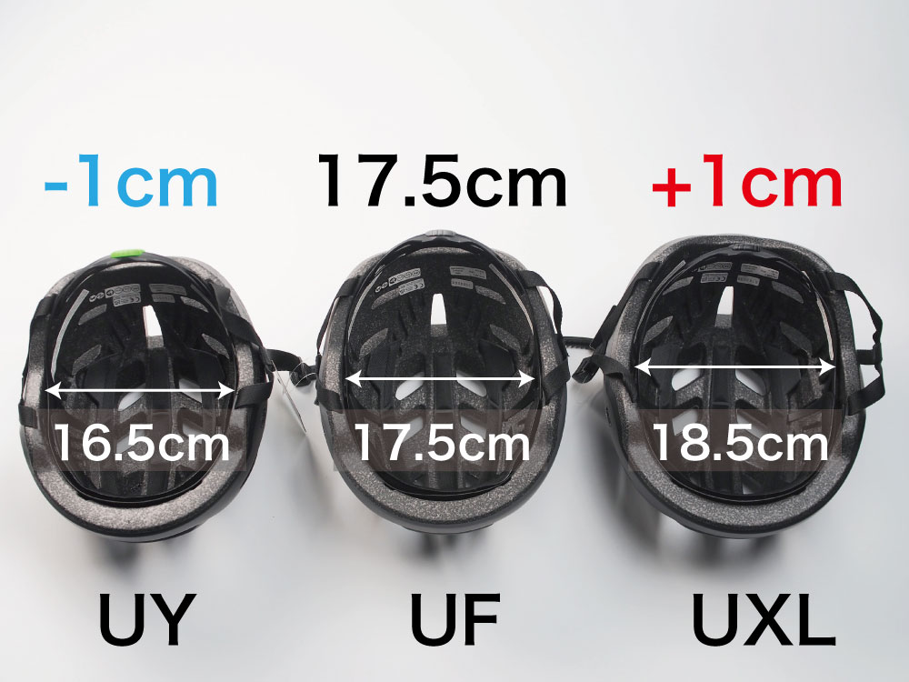 逆にアジアンフィットのMサイズで極端に広く感じてしまう方や、普段のヘルメットはSサイズという方はフリーサイズか小さめのUYが合うかもしれません。