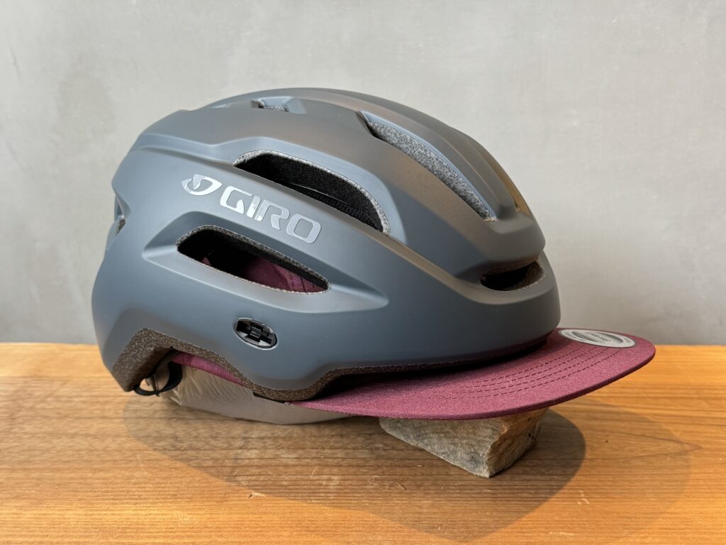 工具なし着脱できるバイザー、外してみると丸っこくコンパクトなシルエットでクロスバイクやミニベロなどシティサイクルにピッタリ。