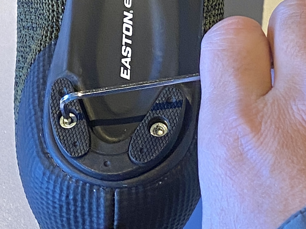 シューズとヒールパッドの間に隙間がないか確認しながらしっかりと締め込んでいきます。