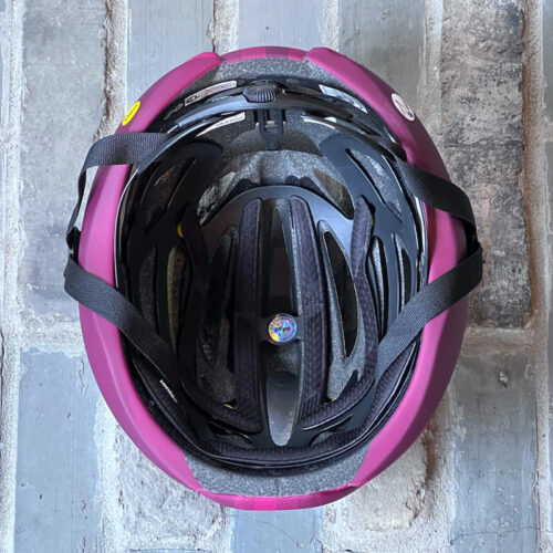 ダイヤルのついたフィットシステムと一体となった MIPS のライナーが、4つある黄色い点を支点として、前後左右にスライドして動いてくれることで、外部からの様々な衝撃に対して柔軟に和らげることができるのです。