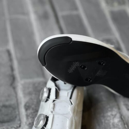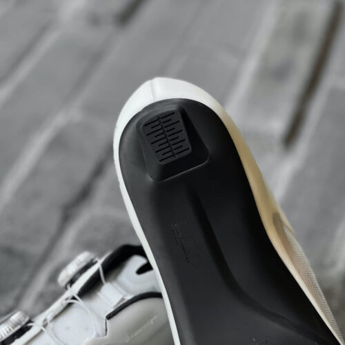 踵部分には、TPU Replaceable Heel Pad(交換可能なヒールパッド)が、シューズ内側からねじ止めされており、カーボンソールの保護はもちろん、取付ボルトの摩耗も防いでいます。