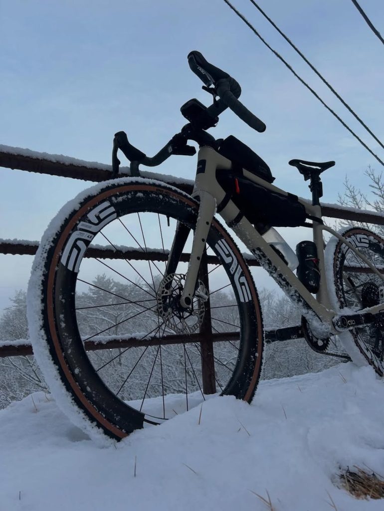 例えば、ダート・グラベルも、ドライなら走りやすいが、気候や天候によって、雨や泥、柔らかい土、そして標高も高く上がっていくと雪の中へと、迷い込んでいくことも。。