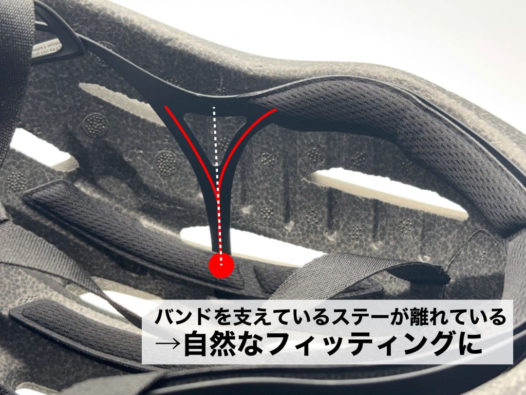 ベルトを支えるステーも外周から離れた場所に配置されているので、自然と頭にフィットするようになっています。