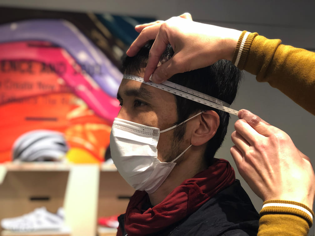 ご自身の頭部形状・サイズ、そして頭部形状に合うフィットと適正なサイズがわかったら、いよいよフィッティング。