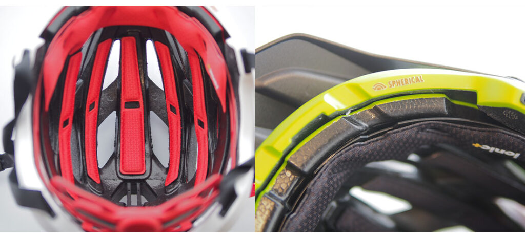 「SPHERICAL TECHNOLOGY(スフェリカル・テクノロジー)」は、インナーライナーとアウターライナー(シェル)を分離させることにより、回転衝撃エネルギーを方向転換して分散させ、万一の落車や転倒時に頭部への衝撃を緩和する画期的なシステム。