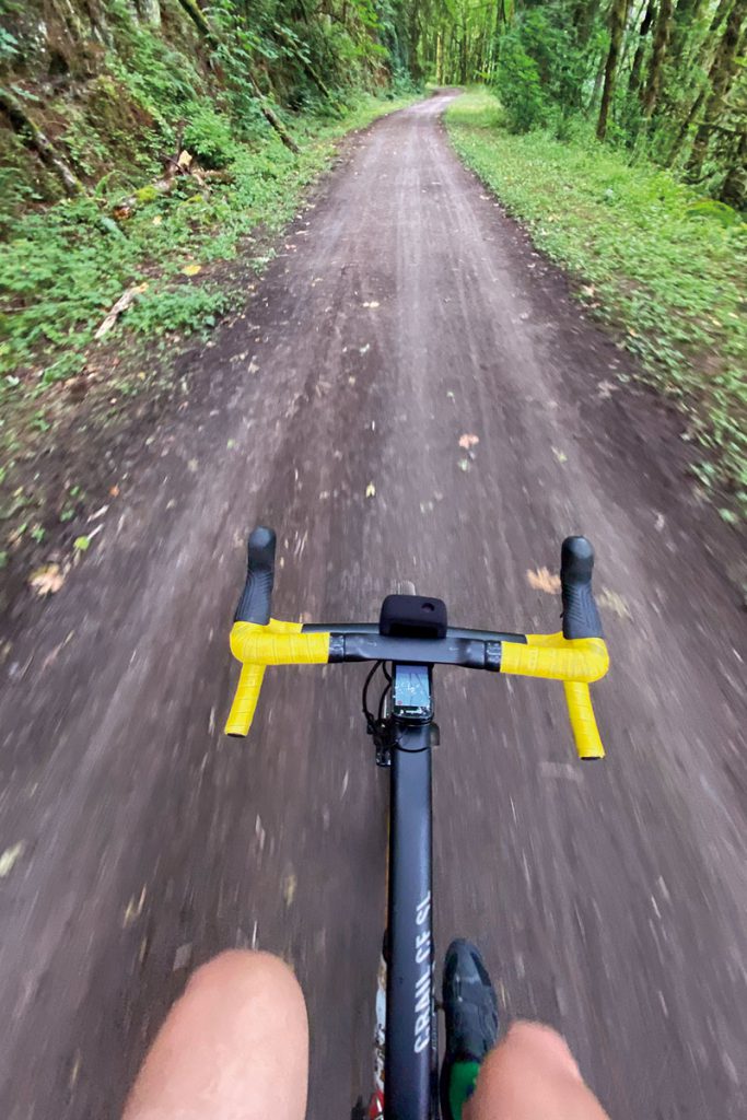 路面はメンテナンスが行き届き、極めてスムーズです。また、ピークのスカイライン・ブルーバードまで緩やかな斜度で、特筆すべきは折り返して別ルートでのダウンヒルはMTBerでさえも満足させるテクニカルなシングルトラックだということです。筆者のバイクは38Cとある程度の太さを持つグラベルキングSKと、GRXのディスクブレーキの組み合わせでなんとか無事下ることができましたが、あまりの振動でハンドルに装着したGoProが下を向いてしまう始末で、グラベルバイクで下るシングルトラックとしてはやや限界を超えた 難易度だと感じました。このサルツマンロード以外にも、スカイライン・ブルーバードより東の一帯はフォレストパークという公園になっており、多くのグラベルロードやトレイルが縦横に走っています。