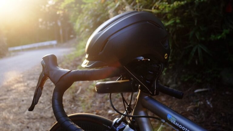ジャンルとしてはアーバンヘルメットに該当するけど、色々なスタイルにマッチするのも特徴の一つ。この撮影時は少し離れた山までロードバイクで行ってきました。