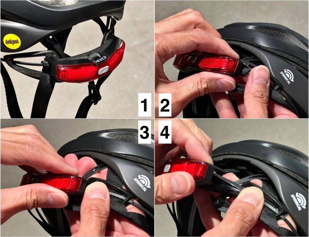 ARIES SPHERICAL、AETHER SPHERICAL、HELIOS SPHERICAL や、AGILIS、RADIXといった、GIROの最新フィットシステム:ROC LOC 5 を採用したロード・MTBヘルメットに簡単に着脱が可能な、GIROヘルメット専用のLEDリアライトです。