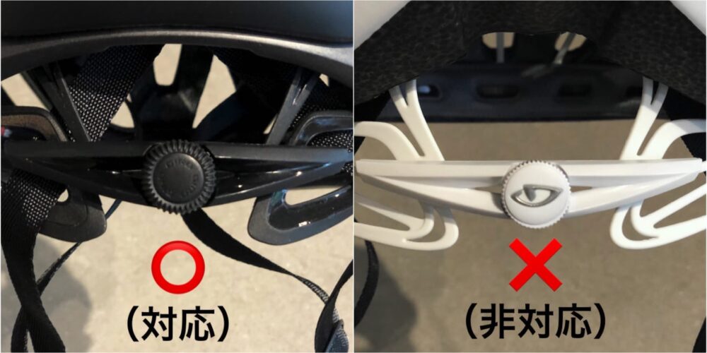 下記写真をご参考に、ご自身のヘルメットのフィットシステムがどちらのタイプか、取付けの可否をご確認ください。