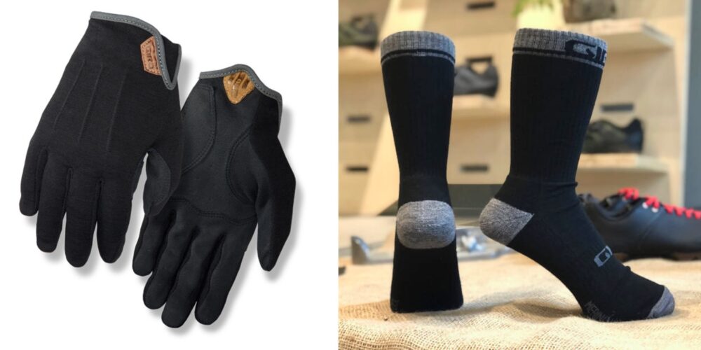 D’WOOL グローブ(写真左)は、メリノウールにナイロンをブレンドすることで強度・耐久性も持たせているグローブ。
