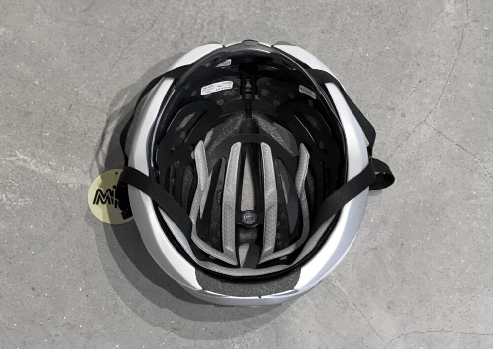 これによりヘルメット内部もスッキリとし、嵩張ることなく、ヘルメットの中にサイクルキャップなども着用しやすくなっていることも特徴の一つです。