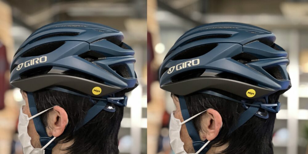 フィットシステム中段(写真左)から、下段(写真右)へ。 後頭部のホールド感を好みにより調整できる。