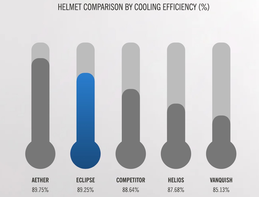 この通気性能・クーリング性は、GIROの他のモデルや他社モデルとの比較によっても、明確に数字に表れます。(下画像:冷却効率比較)