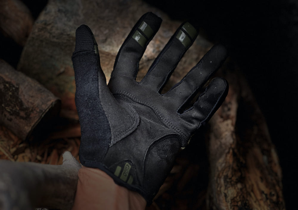 手のひらはマイクロファイバー素材によって、擦れや傷にも強く、要所に動きやすいように切り返しと補強を行い、厚さ2mmのクラッシュパッドも配備。