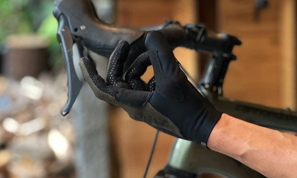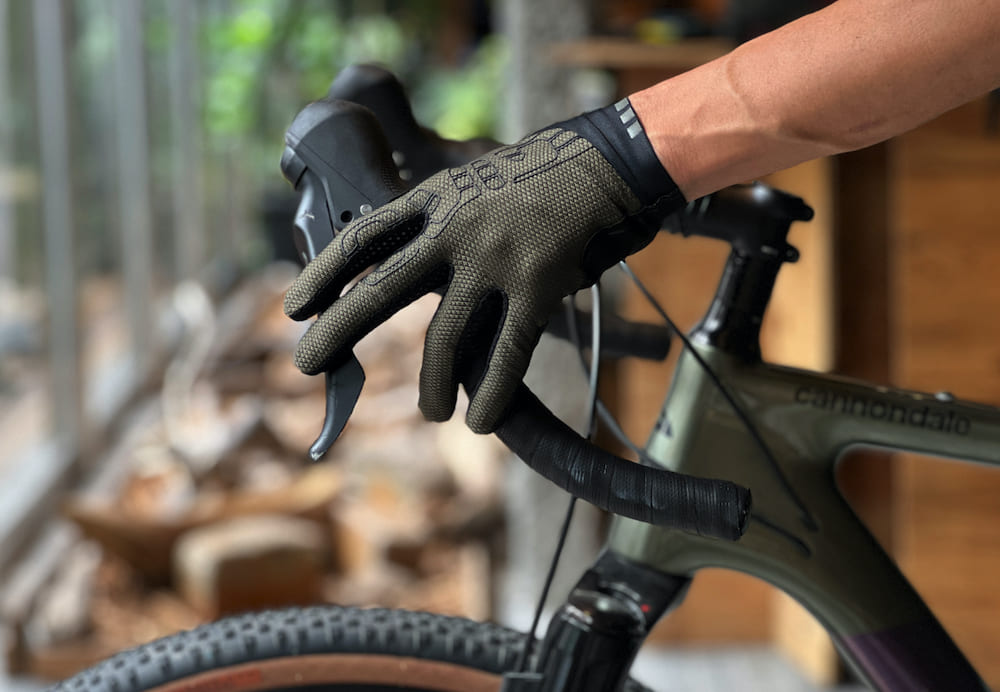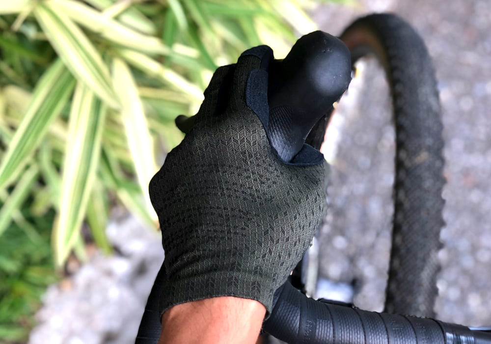手のひらから指先まで余分なものを一切排除し、シンプルな構造によって、グリップ良くハンドリングに集中でき、指先までの柔軟性が良いので、ギア・ブレーキなどの操作性もスムーズに。