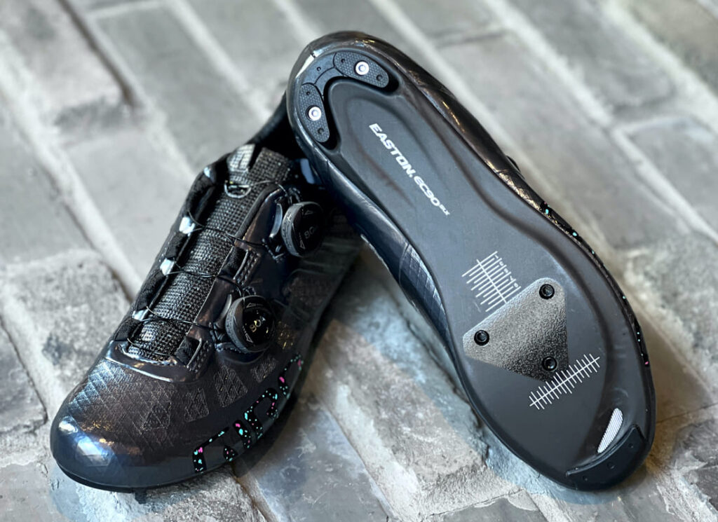 軽量かつ、高剛性で、ハンドル・ステムやクランク・ホイールといったさまざまなカーボン製品を創り出していることでも実績のあるカーボンスペシャリストブランド:EASTON社製の EC90 SLX II ハイモジュラス カーボンアウトソール による、高強度・高弾性・超耐久性を以って、我々の足元を支えます。
