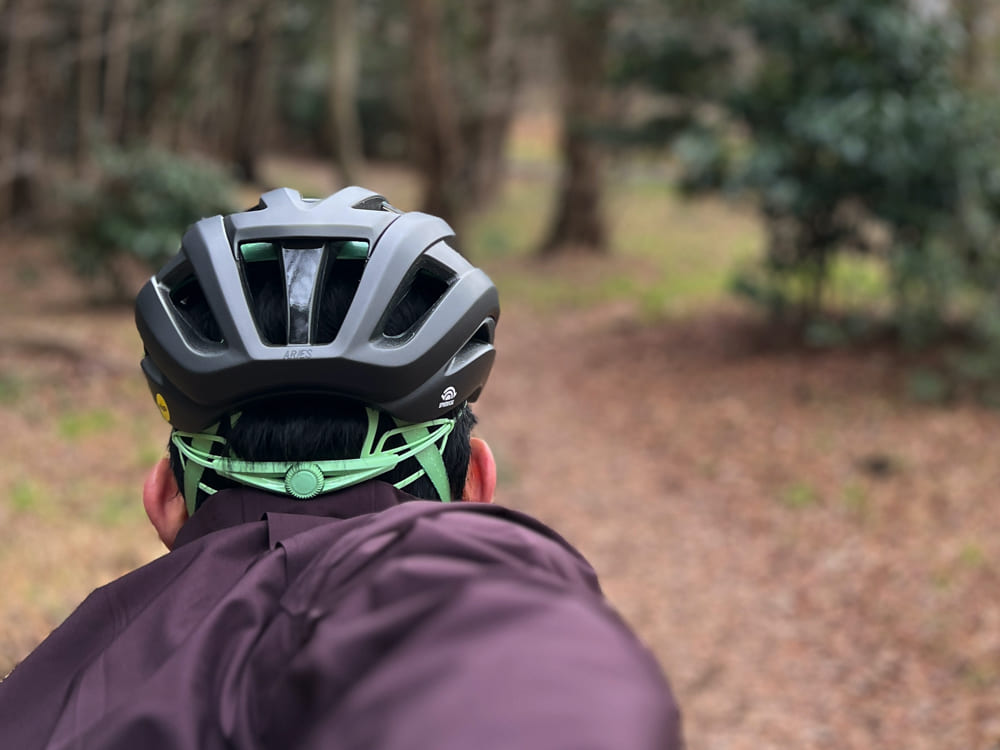 この日は気温もやや低く風も多少ありましたが、ARIESの着用感を確かめるために、敢えてキャップなどは着用せずに試しましたが、風が頭部に直接当たりやすく、見事にすり抜け、とにかく頭が寒かった。。。(苦笑)