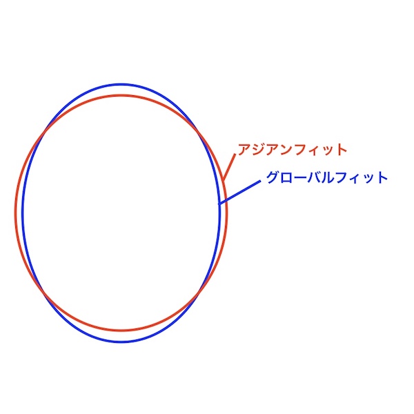 アジアンフィットは幅が広めで、前後に短く(真円に近い)