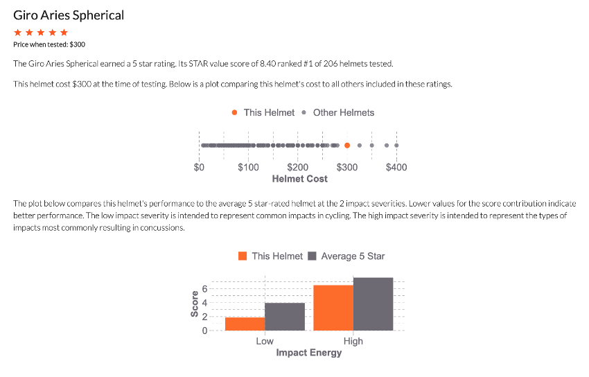 GIROのフラッグシップヘルメットのアリーズ・スフェリカル(ARIES Spherical)は、ヘルメット安全評価第三者機関VERGINIA TECHテストレコードを叩き出しNo1ヘルメット(テストしたGIRO以外のヘルメットも含めて!)に選ばれています。