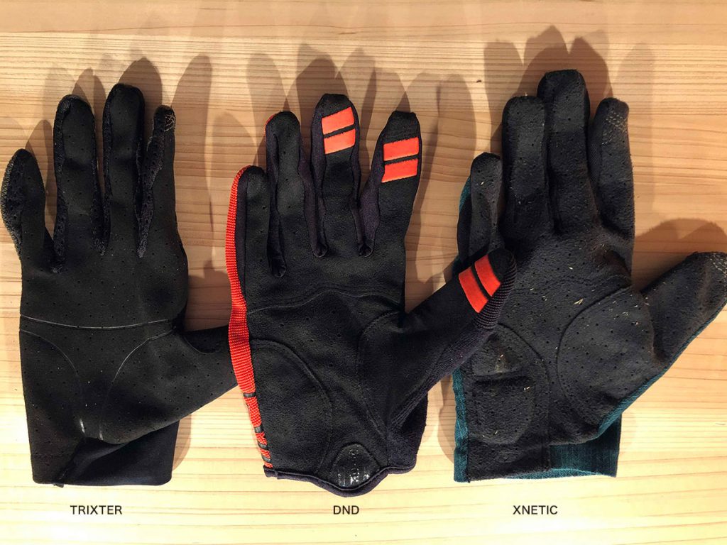 そして汗による冷却効果があるというアッパーは、横方向よりも縦方向に非常によく伸びるように工夫されており、縦横伸縮を各グローブで比較するとTRIXTER:縦10/横4 XNERIC:縦10/横8 DND:縦3/横9といった具合。縦方向の伸縮性が高ければ、突っ張り感がなくなり、より手の甲の素肌感覚が得られやすいと感じます。ロードやグラベルライドの際、にもこういった所は気になる方が多いと聞きます。