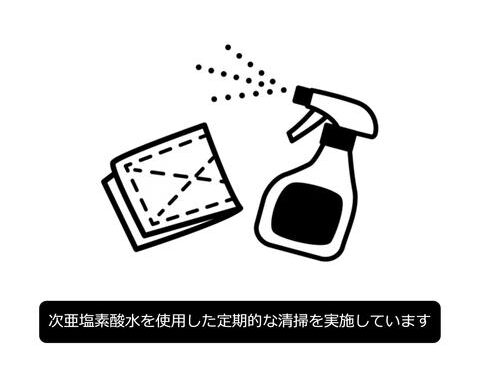 お客さまが触れやすい場所、化粧室、レジカウンターなど定期的な消毒を実施しております。