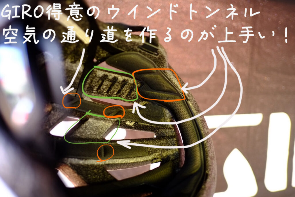 GIRO安全性を優先し、決してヘルメットに軽量さを求めていませんが、それでも実現できたというのは自社内でトライアンドエラーを繰り返すからでしょう。