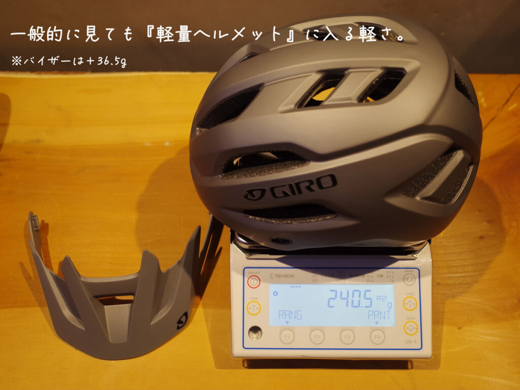 240gは間違いなく軽量ヘルメットの部類に入ります。