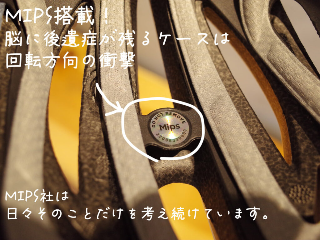 ヘルメットの内側にもう一層形成されたMIPSシステム。この2層が転倒などの際の衝撃時にずれることで、衝撃を逃し、脳への深刻なダメージの確率を減らします。ついているとついてないでは安心感が全然違う。