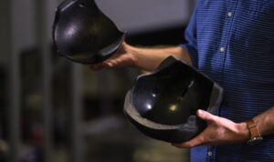 頭部の外周を、耳の上から平行に、眉の上を通り、後頭部の一番出ている部分の3点を結ぶように水平にメジャーを一周させて計測します。