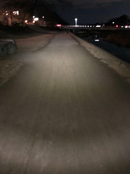 私が普段ナイトランニングをしている河川敷は、比較的明るい(周辺にある程度車通りがある道路もある)ため、BILBYで400ルーメンの明るさでランニングすると少し明る過ぎる感じも受けました。すれ違う際に顔に光を向けられると、眩しく感じることがあるかもしれません。