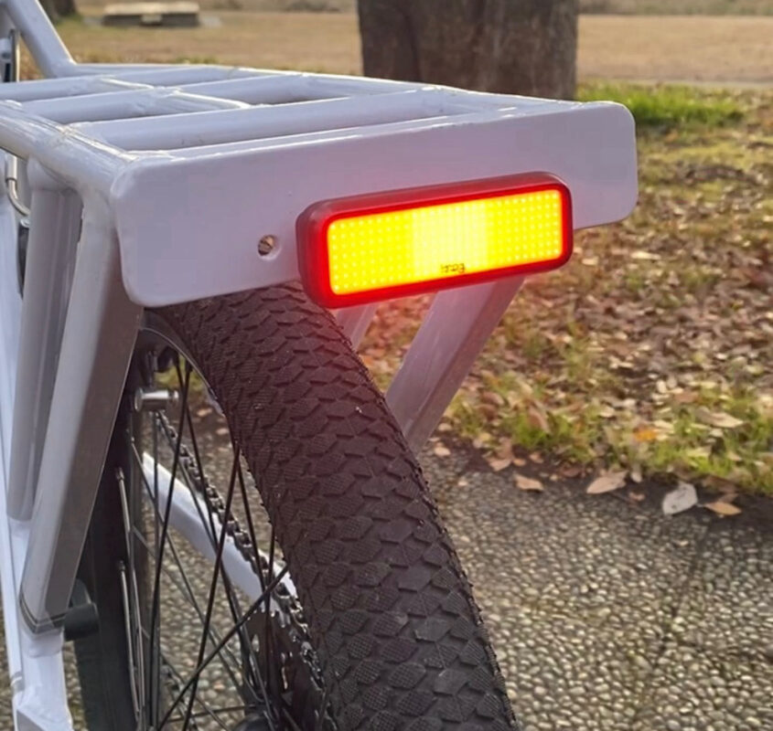 子供乗せとか、リアバスケット、リアラックの荷物満載のシチュエーションでは困っていたリアライト問題もこれで解決です。