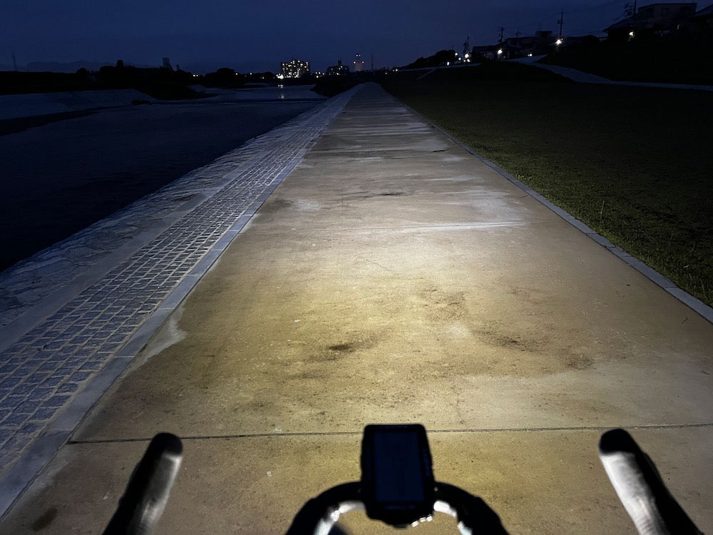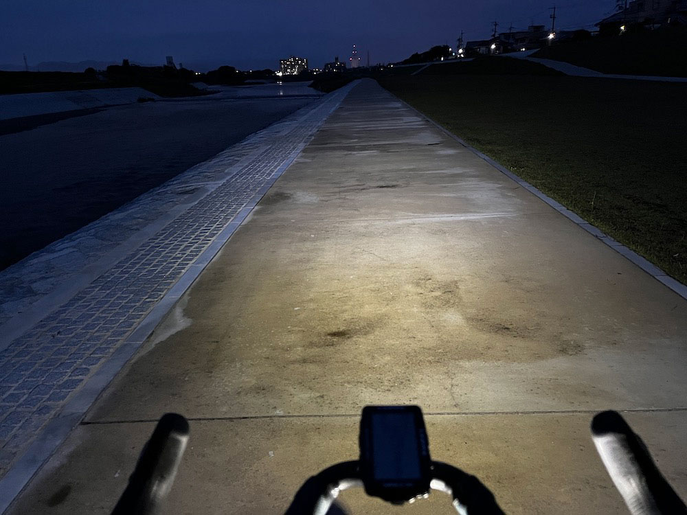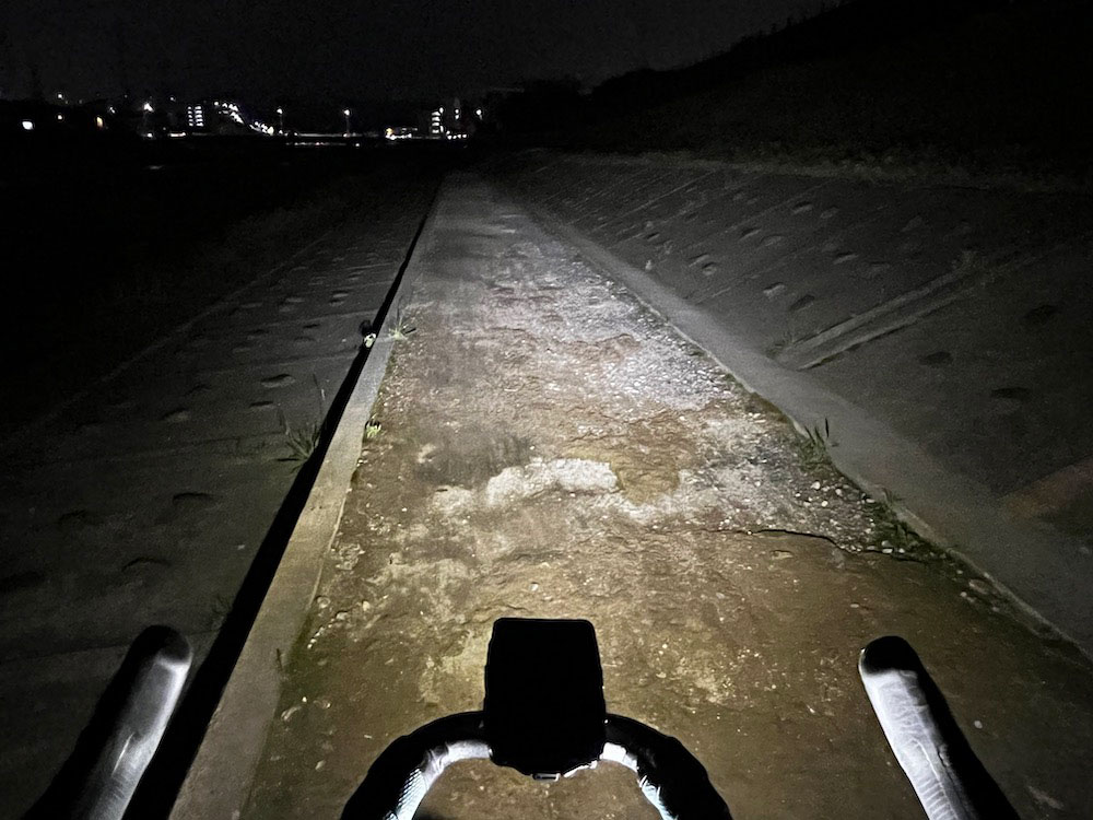 と、いきなり現れる未舗装路(河川敷あるある)にもしっかり路面の状況を捉えられる明るさでこれもいいねと思いながら進む。