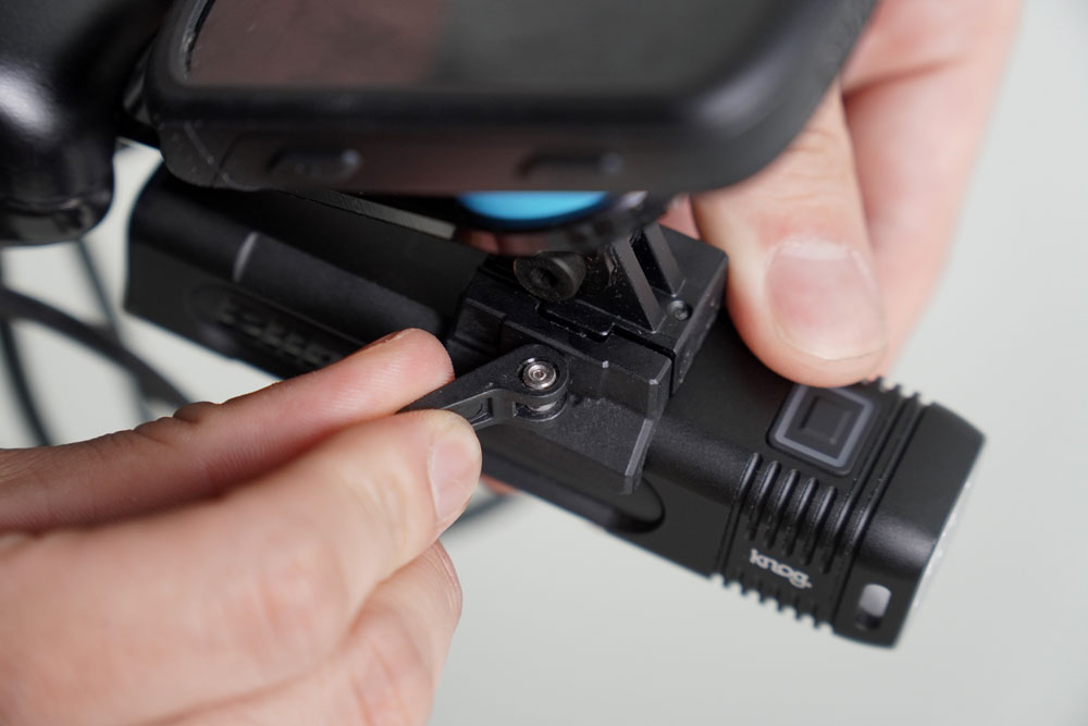 マウントをボルトで固定し、後はライト本体をクイックリリースで挟み込むだけ。