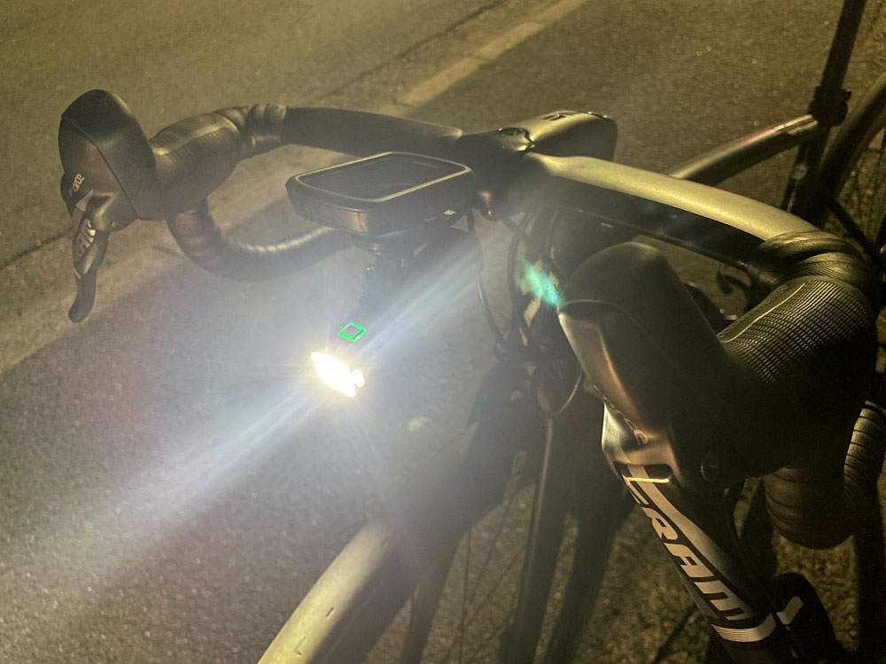 今回はライトということもあり夜ライドで使用しましたがバッテリーライフから考えるとライド前日に満充電にしておき、日中はエコフラッシュモードでデイライトとして、日が暮れだすとステディパルスモードを使用して前照灯として1本のライトで1日楽しむことができます。