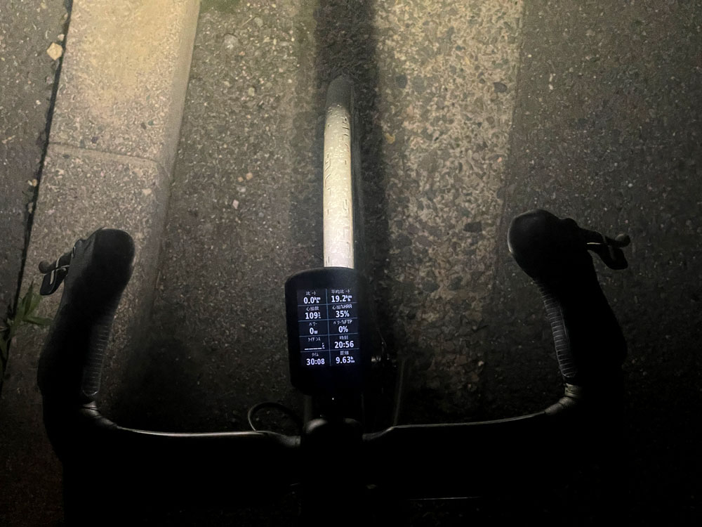 取り付けも完了しいざ夜ライドへ、20時頃出発し1時間くらいと思っていましたが雷がゴロゴロと…天気予報をみるともう少し雨は降らなさそう。せっかく新しいライトもつけてジャージにも着替えたし30分くらいでと思い出発。