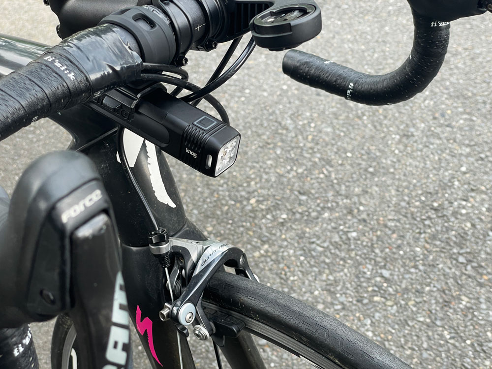 最大600ルーメンのこのライトはマウントなし重量138g(実測)とNEW BLINDERシリーズでは最軽量のモデル。ほかのスタッフが1300ルーメンの一番明るいモデルをテストしていたので最軽量の600ルーメンのモデルをチョイス。