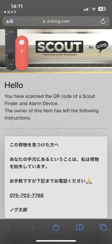 もし紛失した際に誰かがQRコードを読み取ってくれれば、持ち主と連絡を取り合うこともできます。