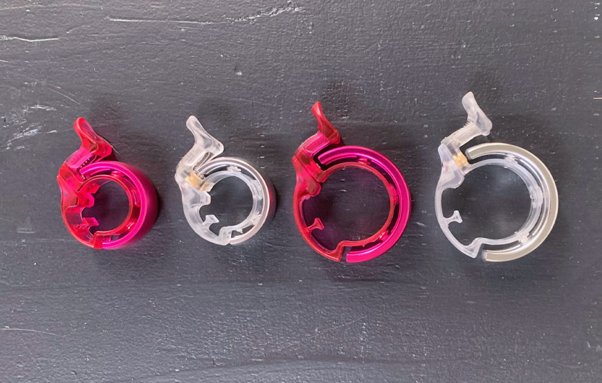 アルミ部分がラズベリーカラー、マウントはクリヤピンクに。