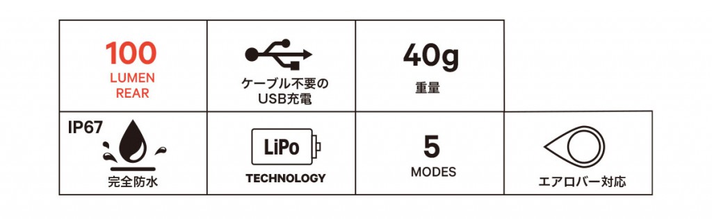- 最大ルーメン: FRONT 50ルーメン / REAR 30ルーメン
