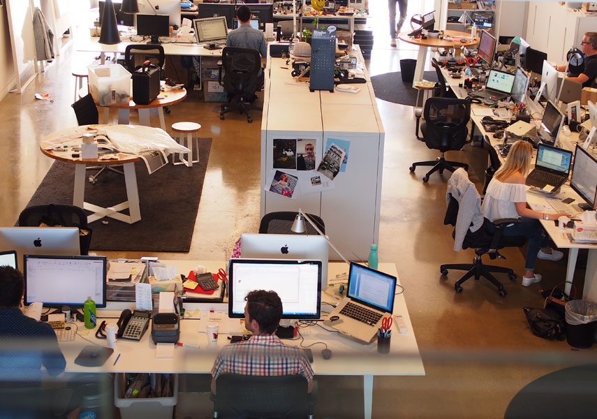 オフィスは吹き抜けになっており踊り場が、来客用のミーティングスペースや、 メルボルンの街並みを眺めるデスクがあり、気持ちの良い環境になっています。