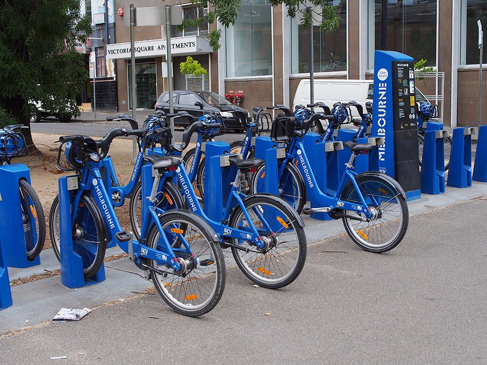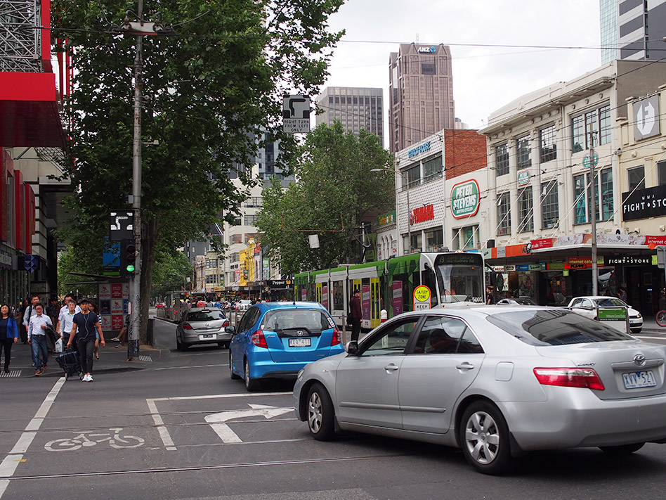 改めて、メルボルンの街を歩いてみると、自転車事情は進んでいる。