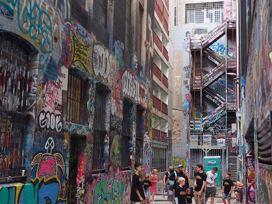 なかでもHosier laneは強烈で、路地全体がグラフィティのキャンバスに。