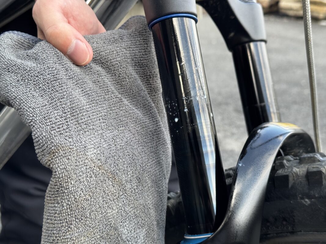 この汚れが、動きの抵抗を生んだり、ゴムシールやインナーチューブの劣化につながります。