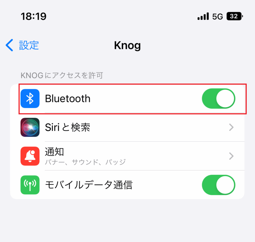 ・iOSの設定でknogアプリにBluetooth接続を許可する
