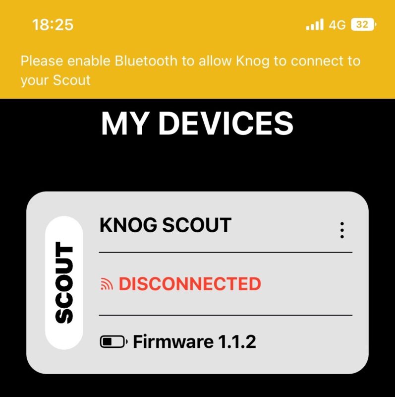 「Please enable bluetooth to allow knog to connect to your Scout」