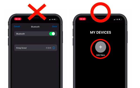 Knog Mobile上にSCOUTが表示されない場合や、SCOUTがアプリへ接続されない場合は下記をお試しください。