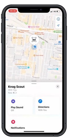 Knog Scout は、Apple Watch シリーズ 4 以降の「持ち物を探す」を使用して見つけることができます。